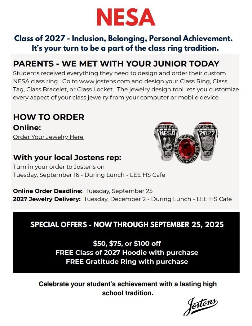 Exciting News!!!! Jostens is doing NESA specific class rings!!!!! Follow the link if you are interested in a class ring